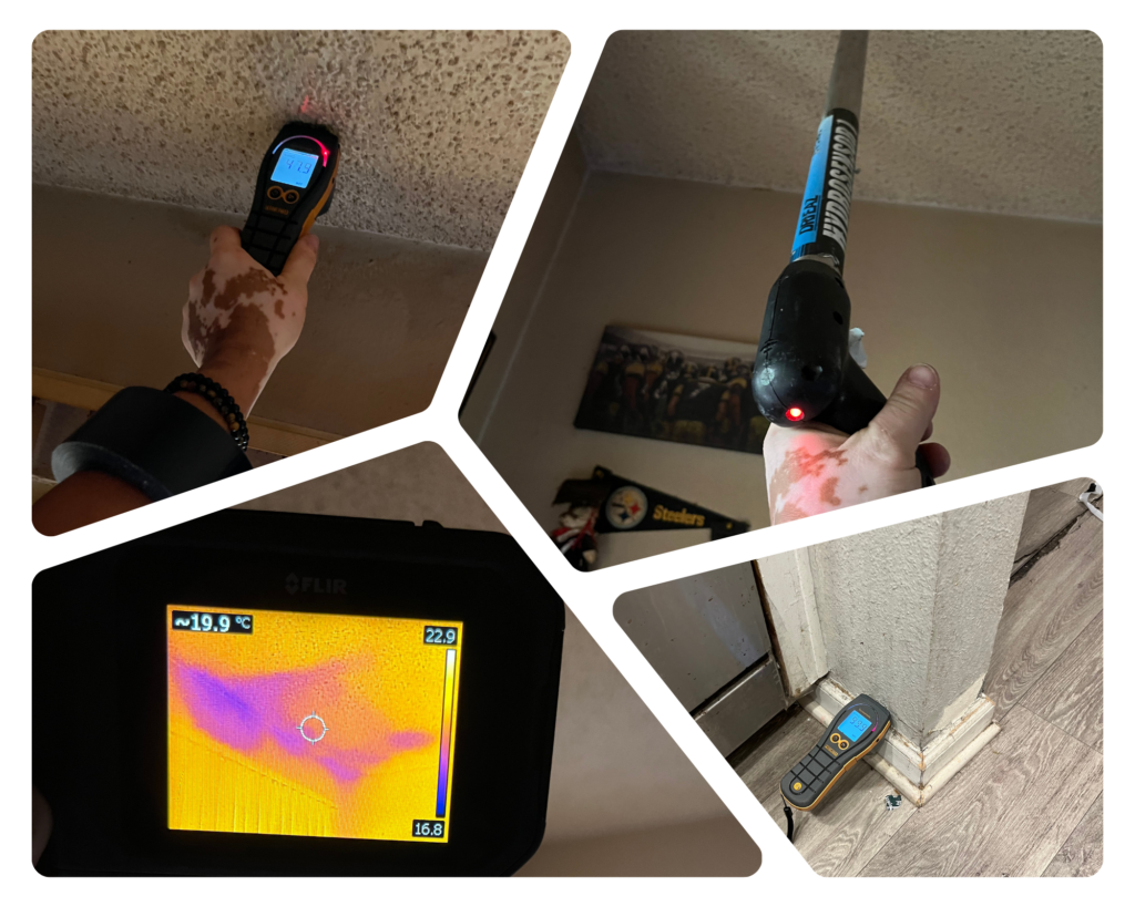 A thorough examination using specialized moisture detection meter, probe and sensors to determine the extent of the damage enables us to form the most effective plan for returning your property to normal as quickly as possible. Our inspection may include identifying possible hoses or other part that may have been the cause and proving photo documentation.